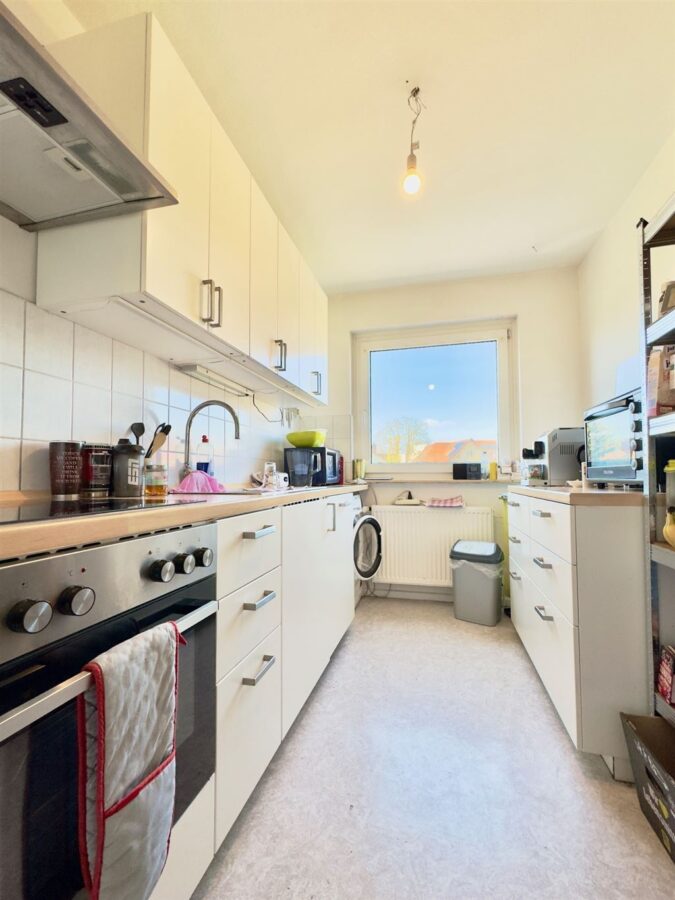 Ordentliche, renovierte Ausstattung, unter anderem eine neuwertige Etagenheizung (2020), Isolierglasfenster, Laminatböden, eine moderne Einbauküche, ein Wannenbad mit Fenster sowie ein separates WC, eine elektrisch betriebene Balkonmarkise, ein Abstellraum in der Wohnung, ein geräumiger Kellerraum etc.