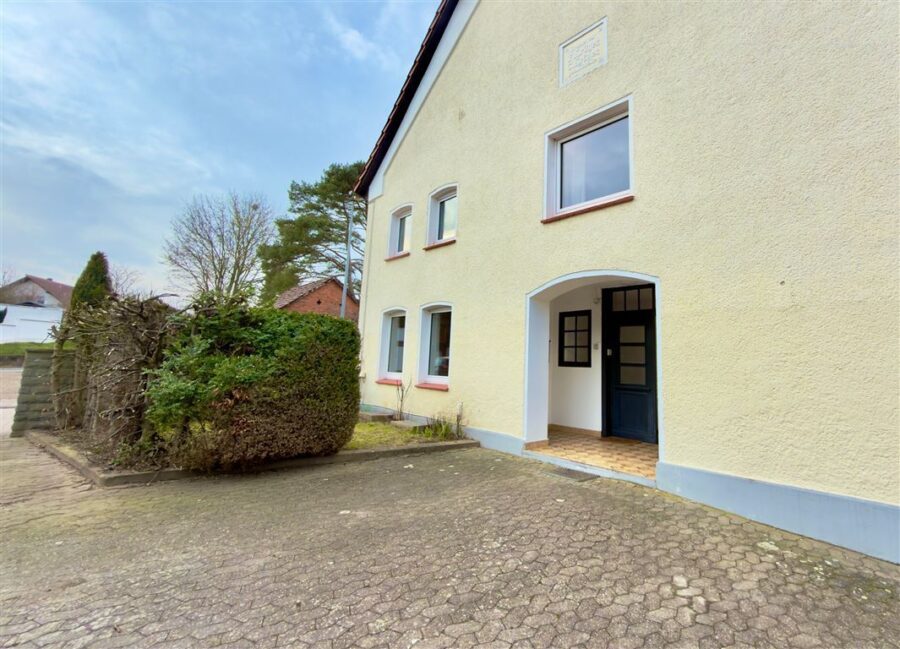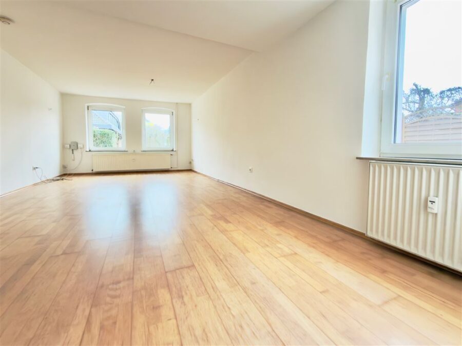 Geräumige Erdgeschosswohnung in einem gepflegten Zweifamilienhaus. Sie verfügt über ein großzügiges Wohnzimmer, ein Schlafzimmer, ein weiteres Zimmer – z. B. Kinder- Arbeits- oder Gästezimmer, eine Küche mit praktischem, angrenzenden Abstellraum, eine große Diele und ein modernes Bad. Direkt vor dem Haus befindet sich außerdem ein schöner sonniger, von Hecke und Mauer gut geschützter Freisitz, der für die Mieter dieser Wohnung da ist. Zwei PKW-Stellplätzen runden dieses Wohnangebot ab.