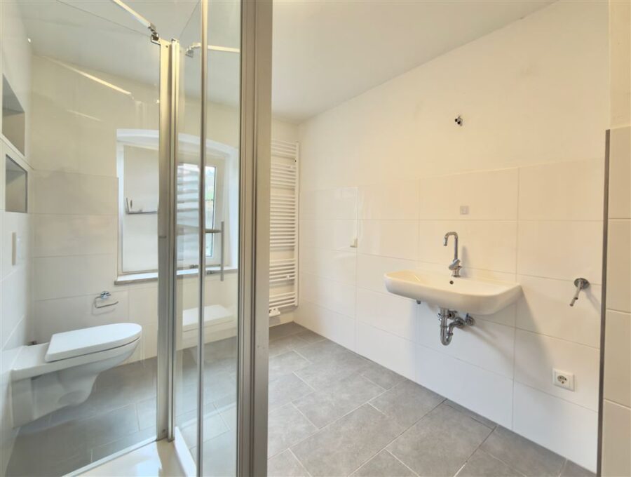 Gute, renovierte Ausstattung. Unter anderem Zentralheizung, Isolierglasfenster, Parkett-, Laminat- und Fliesenböden, ein modernes, neuwertiges Bad mit bodengleicher Dusche, Waschmaschinenanschluss und Fenster etc.. Eine SAT-Schüssel ist vorhanden – ebenso auch ein Glasfaseranschluss im Haus.